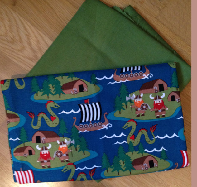 Der nächste Schritt war dann die Stoffauswahl. Die beiden Freundinnen haben sich ihre Stoffe selbst ausgesucht und für Finn haben Simone und ich einen ganz süßen Wikingerstoff aus meinem Vorrat gewählt. Zufällig hatte ich einen genau dazu passenden grünen Stoff und so entstand die Idee, zwei Buchstaben mit dem Motivstoff vorne und grün an den Seiten und zwei mit dem grünen Stoff vorne und dem Wikingerstoff an den Seiten zu nähen. Natürlich abwechselnd, weil es so interessanter aussieht.